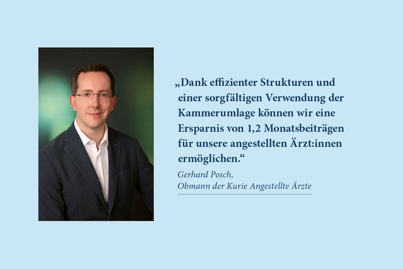 Hintergrund ist, dass das Budget der Ärztekammer bedarfsorientiert aufgebaut ist: Das bedeutet, die Beiträge der Mitglieder richten sich direkt nach dem tatsächlichen Mittelbedarf – und in Folge kann die Kammerumlage für die Ärzt:innen reduziert werden, wenn damit besonders effizient gewirtschaftet wird.