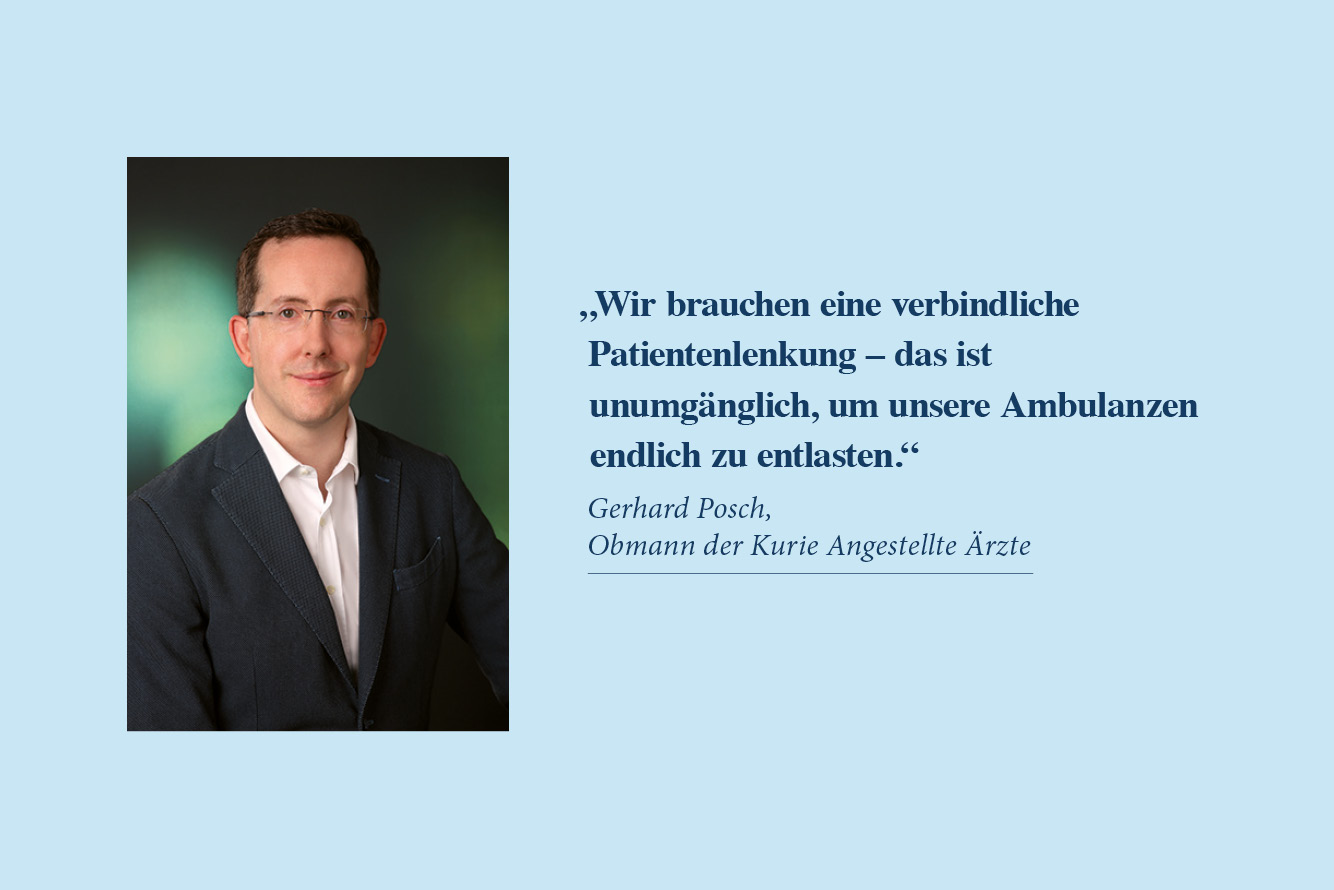 „Ohne eine verbindliche Patientenlenkung müssen die Ambulanzen weiter die strukturellen Defizite ausbaden und Patient:innen versorgen, die außerhalb des Spitals gleich gut und kosteneffizienter behandelt werden können. Es braucht dringend Lösungen von Seiten der Politik, um die Situation endlich in den Griff zu bekommen“, bringt Gerhard Posch, Obmann der Kurie Angestellte Ärzte, die Forderung der Ärzteschaft klar auf den Punkt.