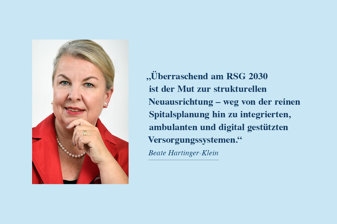 Beate Hartinger-Klein war von 2017 bis 2019 österreichische Gesundheitsministerin. Für uns hat sie den steirischen RSG 2030 unter die Lupe genommen. Im Interview sagt sie, was sie darin überrascht hat, was zu kurz kommt und an welchen internationalen Vorbilder man sich orientieren sollte.