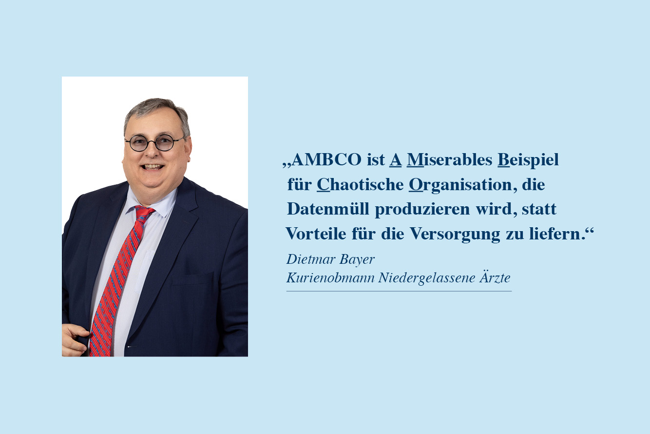 Trotz der Erleichterung für die niedergelassenen Ärzt:innen, bleibt AMBCO dennoch „A Miserables Beispiel für Chaotische Organisation, die Datenmüll produzieren wird, statt Vorteile für die Versorgung zu liefern“, bringt Bayer die Kritik der Kurie auf den Punkt. Man habe die Chance vertan, die medizinische Dokumentation von der Abrechnungsdokumentation zu trennen. Es brauche moderne Lösungen mit einem Mehrwert wie z. B. einer Patient Summary. Auch beim Datenschutz ortet die Kurie bei AMBCO schwere Mängel – und steht damit nicht alleine da.