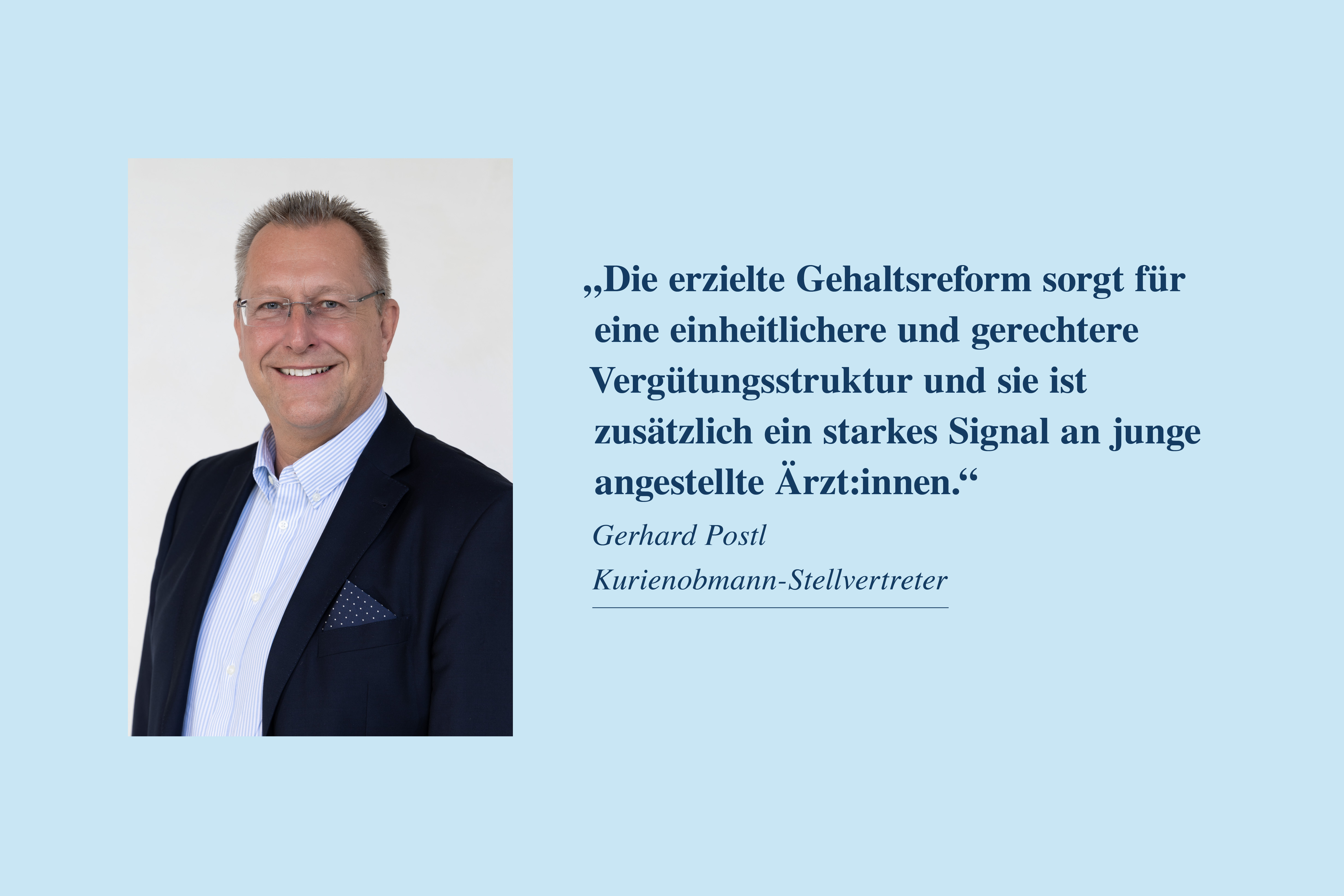 „Mit dieser Reform wurde nun eines unserer wesentlichen Ziele erreicht. Sie ist das Resultat einer langen und konsequenten Arbeit der Standesvertretung“, betont Gerhard Posch, Obmann der Kurie Angestellte Ärzte, der bei den Verhandlungen federführend war.