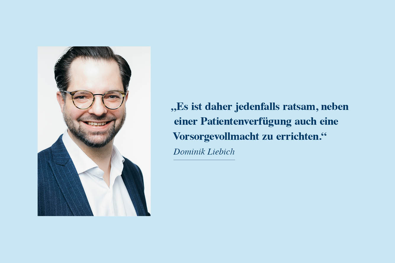 Es ist daher jedenfalls ratsam, neben einer Patientenverfügung auch eine Vorsorgevollmacht zu errichten, in welcher die Patient:innen für den Fall ihrer Entscheidungsunfähigkeit eine Vertrauensperson mit ihrer Vertretung bevollmächtigten.