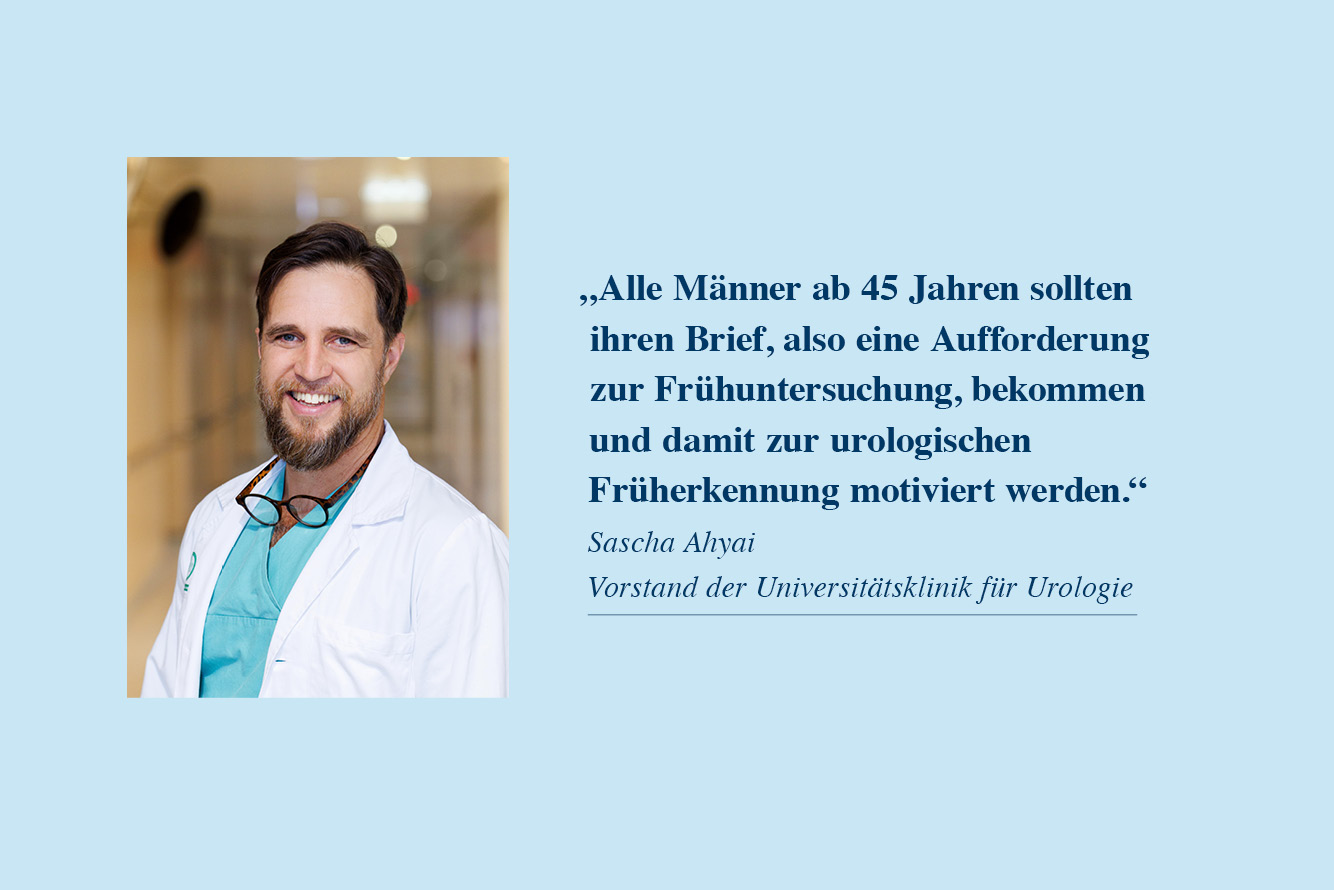 Positiv, weil dies eine Hemmschwelle abbaue, sieht der Experte, dass die digitale rektale Untersuchung als Teil der gesetzlichen Früherkennung wegfällt: „Viele Männer gehen aus Sorge vor der digital-rektalen Untersuchung nicht zum Arzt. Jetzt reicht aber die Blutuntersuchung mit der Feststellung des PSA-Werts für die erste Risikoabschätzung aus.“