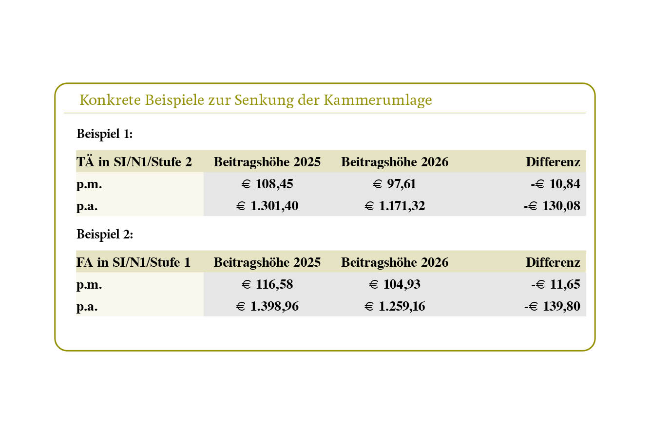 Mit Jahresbeginn 2026 wird die Kammerumlage für alle angestellten Ärzt:innen abgesenkt: