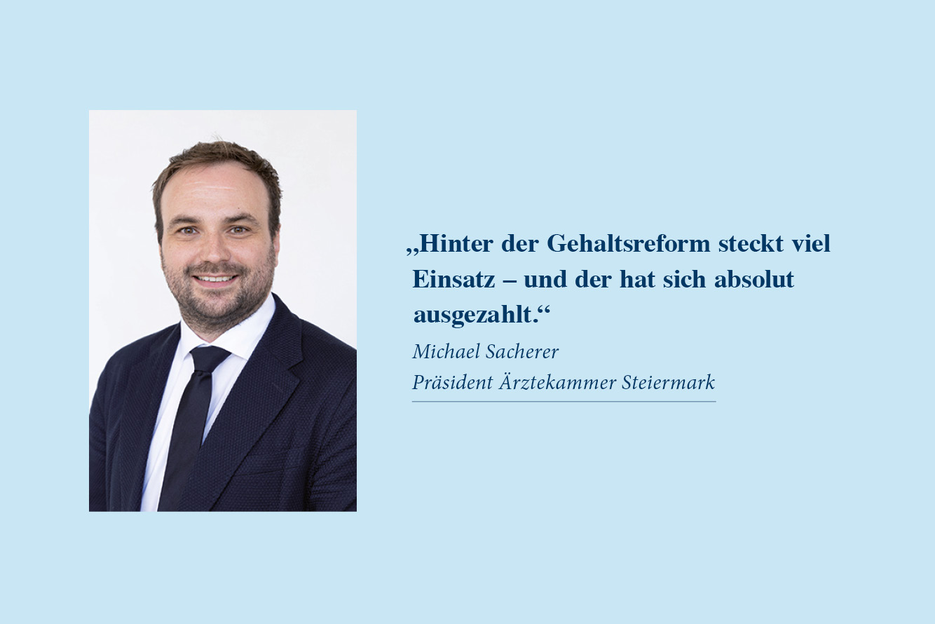 „Mit dieser Reform wurde nun eines unserer wesentlichen Ziele erreicht. Sie ist das Resultat einer langen und konsequenten Arbeit der Standesvertretung“, betont Gerhard Posch, Obmann der Kurie Angestellte Ärzte, der bei den Verhandlungen federführend war.