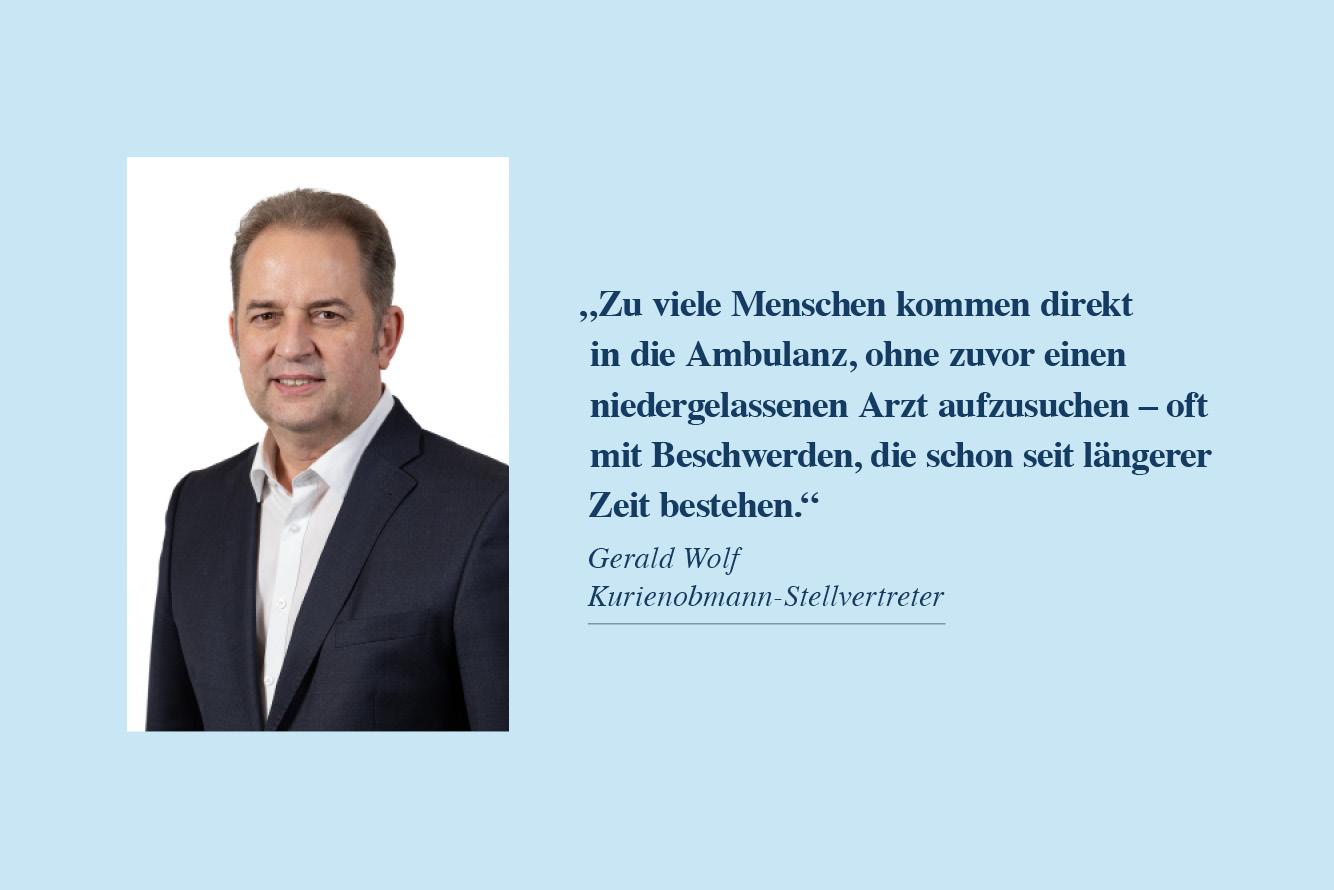 Im Zentrum steht daher die Forderung nach einer verbindlichen Patientenlenkung und nach einer Stärkung des niedergelassenen Bereichs. „Es braucht ein System, das Patient:innen verlässlich an die richtige Stelle leitet – und zwar verbindlich. Freiwillige Empfehlungen reichen nicht aus, wenn Ambulanzen dauerhaft an ihrer Belastungsgrenze arbeiten“, so Kurienobmann Gerhard Posch. „Zu viele Menschen kommen direkt in die Ambulanz, ohne zuvor einen niedergelassenen Arzt aufzusuchen – oft mit Beschwerden, die schon seit längerer Zeit bestehen“, unterstreicht Kurienobmann-Stellvertreter Gerald Wolf. Die Hausärzt:innen haben eine Schlüsselrolle, wenn es darum geht, Patient:innenströme zu steuern. Dafür brauche es aber Angebote auch in Randzeiten, am Abend und an Wochenenden.