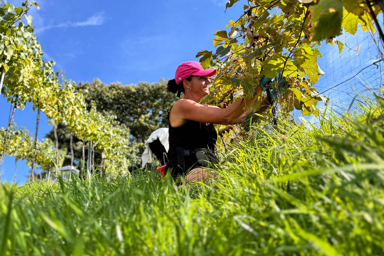 Handeln heißt im Weingut auch richtig mitanpacken: „Ich versuche, jede freie Minute im Weingarten zu verbringen.“ Besonders der Reb-schnitt sowie die Erntezeit sind für Martina Freigassner etwas Besonderes. „Diese Arbeiten erden mich, geben mir Ruhe und lassen mich neue Energie schöpfen. Zu sehen, wie widerstandsfähig Rebstöcke sind und wie sich Beständigkeit anfühlt, wirkt für mich sehr stärkend.“