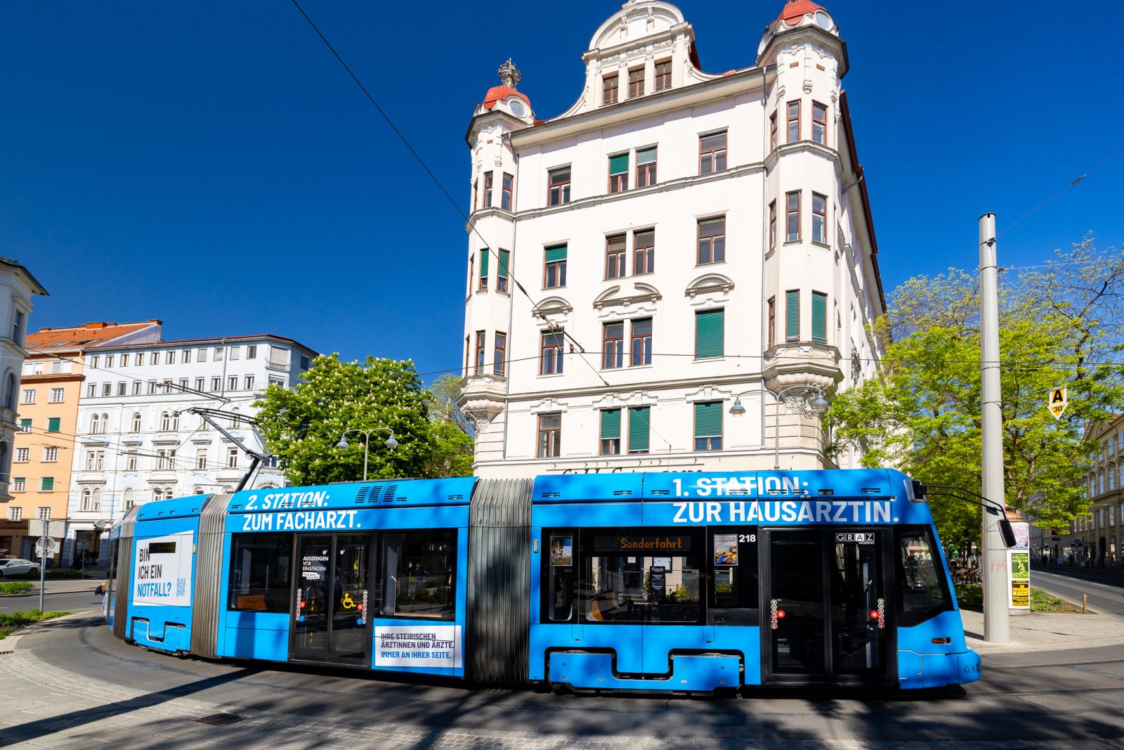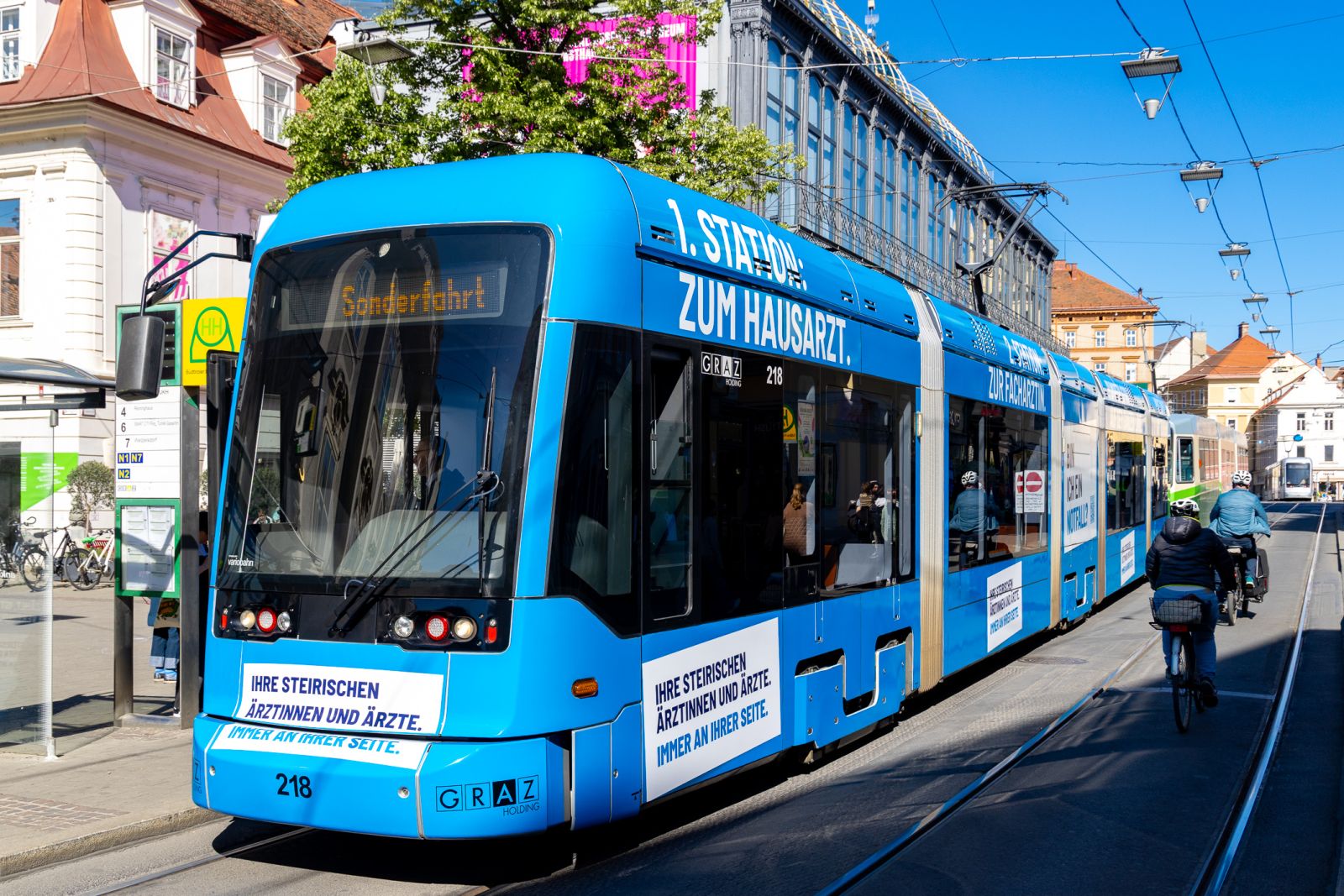 Die Ärztekammer für Steiermark macht das Thema Patientenlenkung dort sichtbar, wo täglich tausende Menschen unterwegs sind: im öffentlichen Raum. Mit einer gebrandeten Straßenbahn sowie einem Wartehäuschen am Südtiroler Platz setzt die Ärztekammer einen weiteren Impuls, um auf den dringenden Handlungsbedarf im Gesundheitssystem hinzuweisen.